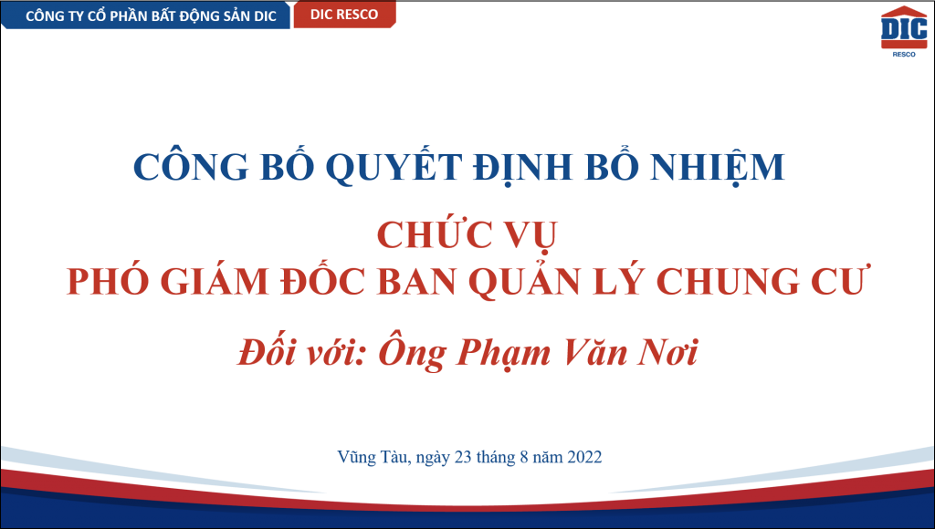 Trao Quyết định bổ nhiệm ông Phạm Văn Nơi – Trưởng Ban quản lý chung cư Vũng Tàu Gateway giữ chức vụ
