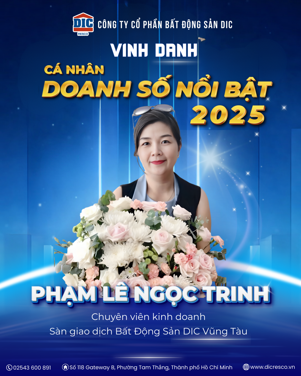Công ty Cổ phần Bất động sản DIC RESCO trân trọng vinh danh Top 9 cá nhân mang về doanh thu cao nhất năm 2025 – những gương mặt tiêu biểu với năng lực kinh doanh vượt trội và tinh thần đồng hành mạnh mẽ cùng dự án.